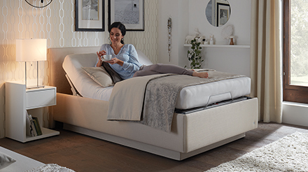 Die konsequente Weiterentwicklung und die ständige Integration von technischen Finessen halten das COMPOSIUM jung. Die bevorzugte Liegeposition lässt sich motorisch per Kabelschalter, per Funkfernbedienung und seit 2018 via App einstellen – und beweist, wie groß wir Funktionalität und Komfort der Extraklasse schreiben.