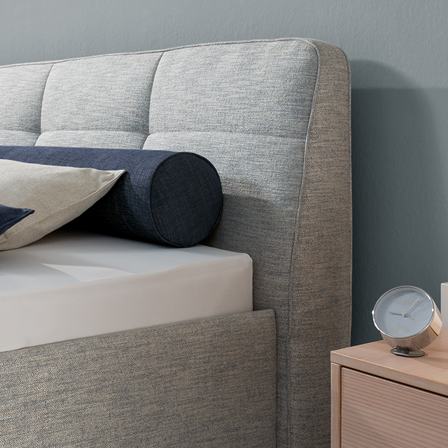 Mit dem schlanken, aufwändig verarbeiteten Kopfteil KT-PR wird das COMPOSIUM zum eleganten Blickfang und Ruhepol, der seine große Wirkung auch in kleinen Räumen ganz nach Ihrem Geschmack entfaltet: Dank einer handwerklich aufwändig gearbeiteten Rautensteppung und Passepartout-Optik verbreitet es Eleganz pur.