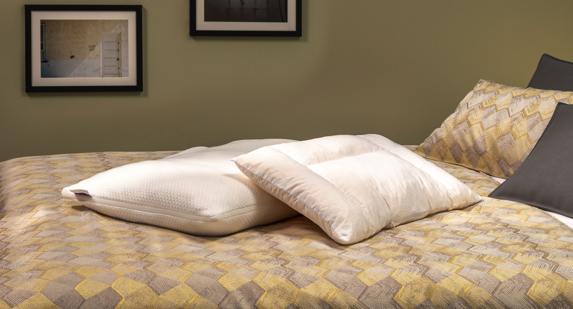 Für die Qualität Ihres gesunden Schlafs ist eine korrekte Körperlagerung von zentraler Bedeutung. Neben der Matratze ist auch das richtige Kopfkissen ausschlaggebend. Dabei ist es wichtig, dass die Wirbelsäule eine gerade Linie bildet, und zwar bis hoch zu den Halswirbeln.