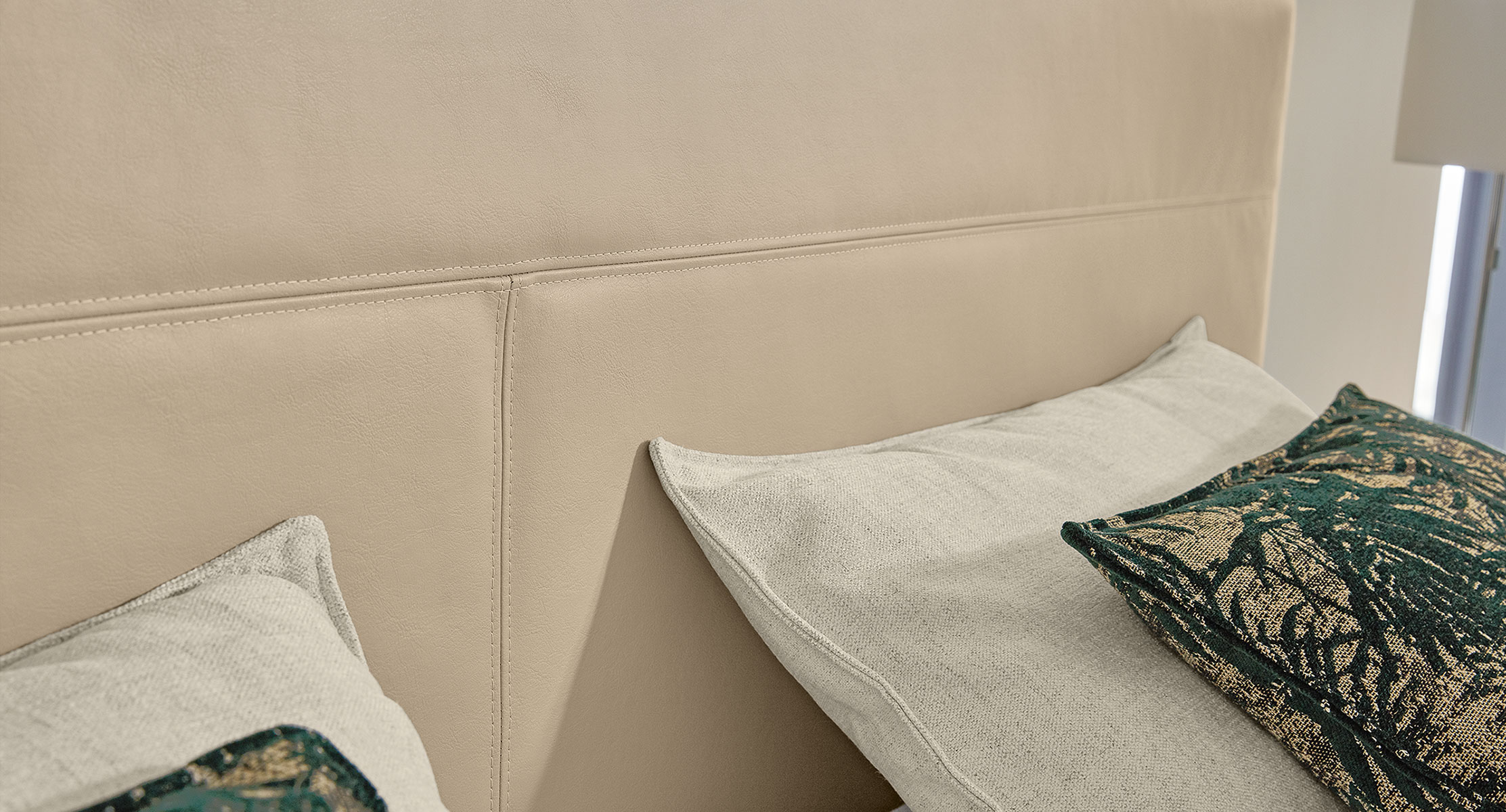 Kubismus mit Einfühlungsvermögen. Durch das kubische Kopfteil KTT fügt sich Ihr VERONESSE in nahezu jeden Schlafzimmerstil perfekt ein. Dabei unterstreicht die aufwändige Nahtverarbeitung den einzigartigen Look dieses Kopfteils.