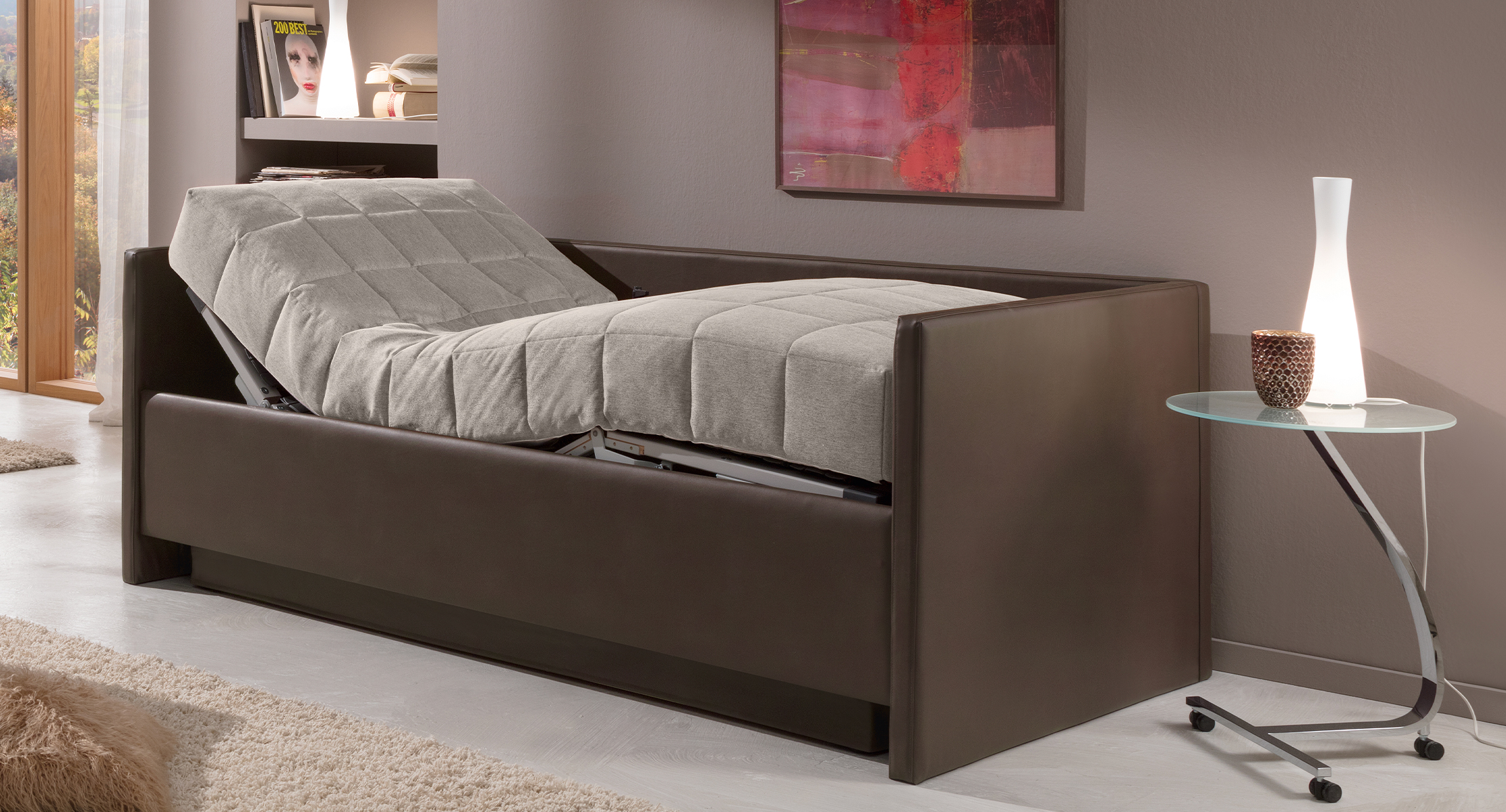 Zum belüfteten Bettkasten optional noch mit motorischer Verstellung via Kabelschalter oder Fernbedienung/APP – für entspannte Stunden