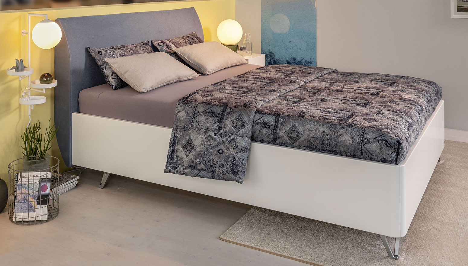 Entspannt zurücklehnen, das kann man hier. Denn ANCONA lässt ganz leicht an verschiedene Vorlieben anpassen. Neben der optischen Wahlmöglichkeit aus 11 Stoffen, kann man zwischen einer Tonnentaschenfederkern- oder Kaltschaummatratze wählen. Belüfteter Bettkasten und Federholzrahmen mit Gasdruckfeder für kinderleichte Handhabung inklusive. Nun hat man die Wahl, dem mit einer eleganten Cacharellnaht und bombierten Bettseiten gestaltete ANCONA, noch den letzten Schliff zu geben.
