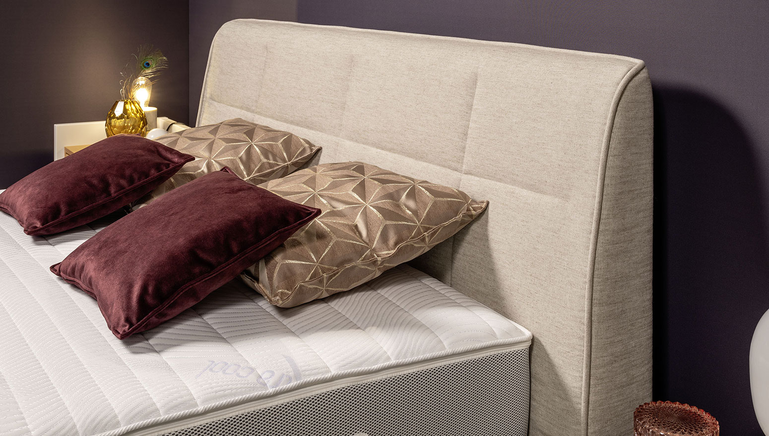 Trendbewusst und trotzdem bequem. Das komfortbetonte Kopfteil KTQ mit eleganter Kassettensteppung. Das aufwändig gearbeitete Kopfteil besticht durch seine ergonomisch ausgeprägte Form und den umlaufenden Dickkeder als stilvollen Blickfang. Dabei sieht es nicht nur umwerfend aus, sondern bietet höchsten Anlehnkomfort für die schönsten Momente des Abends.