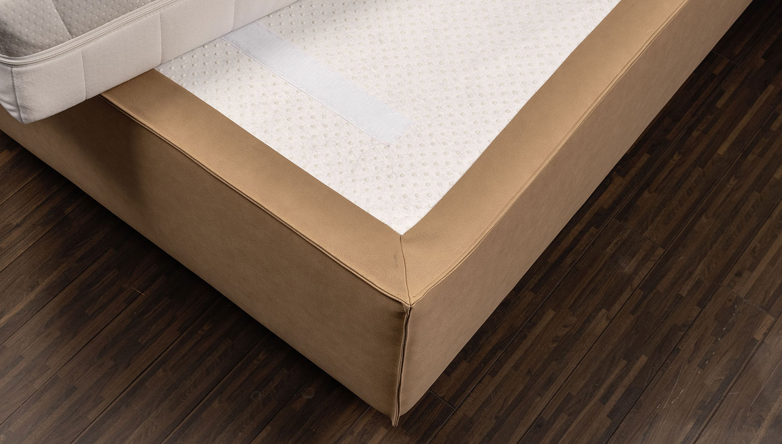 Die neue Unterbauhousse, verleiht ADESSO einen einzigartig eleganten Look. Statt zwei sichtbaren Boxen, wie bei Boxspringbetten üblich, entsteht mit ihr eine durchgängige Optik. Die mit schönen Ziernähten versehene Housse lässt sich zudem einfach abnehmen und reinigen. Für alle, die das besondere Extra lieben.