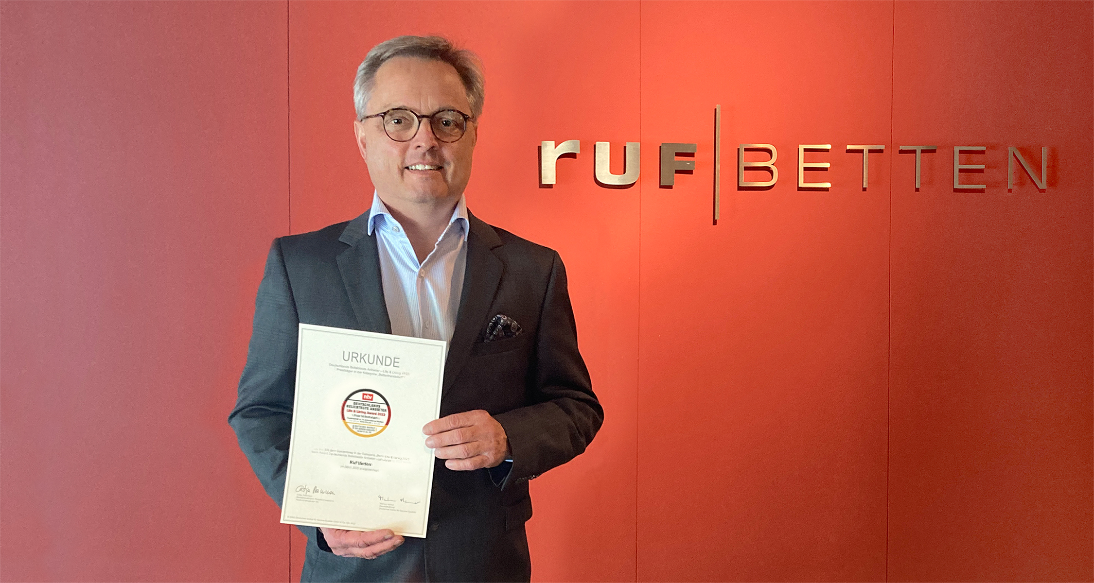 “Being awarded the Life & Living Award 2023 (category: beds & mattresses) makes us very proud. After all, it reflects the overall satisfaction of our customers with the brand,” says Heiner Goossens, Managing Director of RUFBetten. “Several factors are responsible for this success. On the one hand, the passion and skill of our employees, who create the best sleeping solutions ‘Made in Germany’. Secondly, the certifications and independent tests that contribute to our high standards of quality, sustainability and durability. But at the end of the day, it is the satisfaction and willingness of our customers to recommend RUFBetten to others. This award confirms that we will stick to our claims and continue to offer our customers the best sleep solutions for every requirement.”